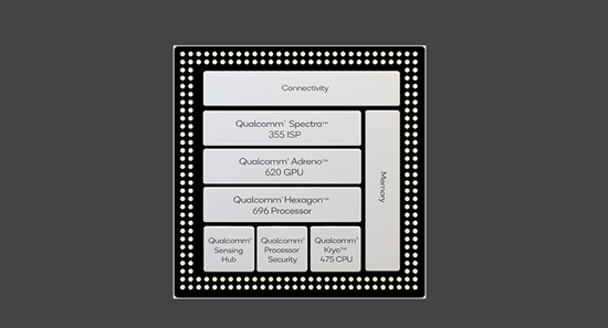 CPU方面,Kryo 475则与骁龙855相同架构。采用全新的八核Kryo 475处理器,1+1+6的三丛集架构。配置一颗2。4GHz的超级大核,一颗2。2GHz的性能核心,六颗1。8GHz效率核心。